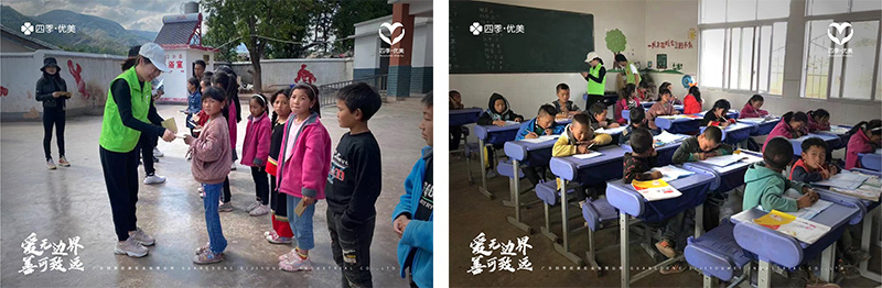 四季優(yōu)美已在昭覺捐建了2所小學(xué)、3座橋梁、 1所幼兒園,第4座橋梁已在規(guī)劃中;一對一資助學(xué)生人次近500名;暖冬活動項目已為10所鄉(xiāng)村小學(xué)的3000余名孩子送去了超30萬元的物資;捐獻逾千本書籍,充實所捐建學(xué)校的圖書室。截止目前,四季優(yōu)美各類公益捐贈累計近1000萬元。