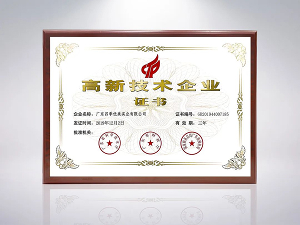 Recently, Guangdong Sijiyoumei Industry Co., Ltd, a well-known enterprise in the field of healthy food production, was awarded the National High-Tech Enterprise Certificate jointly issued by Guangdong Provincial Science and Technology Department, Guangdong Provincial Department of Finance and Guangdong Provincial Taxation Bureau, which is a tribute to its enormous strength of science and technology R&D and capability of continuous innovation.