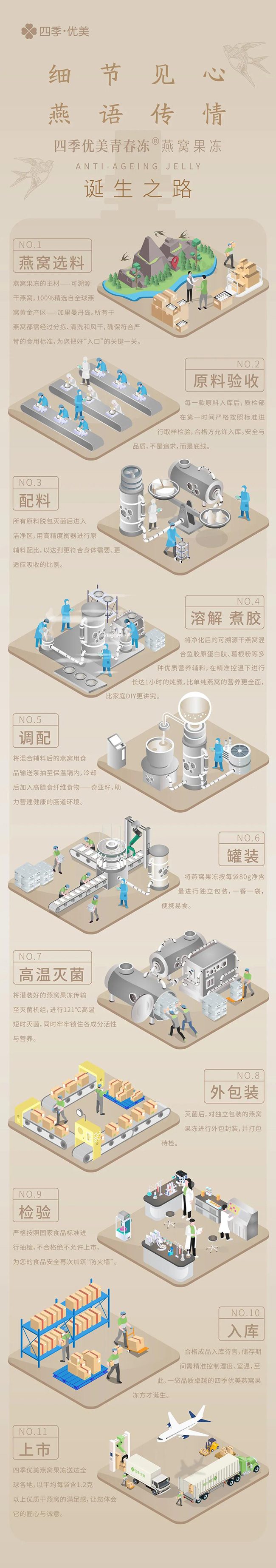 “重劍無鋒,大巧不工”,回歸食養的常識,賦予更多的誠意,針對現代人無法自行甄選品質燕窩原料、不懂燉煮方法、不想耗費大量時間等“痛點”,四季優美燕窩果凍在“剛需”上傾注心力,以“質”“量”立信,為您打造更愉悅的燕窩生活。
