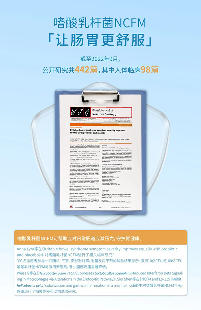 嗜酸乳桿菌NCFM抗“幽”研究成果發表于SCI期刊