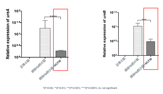 NCFM能顯著降低小鼠體內脲酶的表達,而脲酶數量跟胃部Hp感染、尿素濃度呈正相關。
